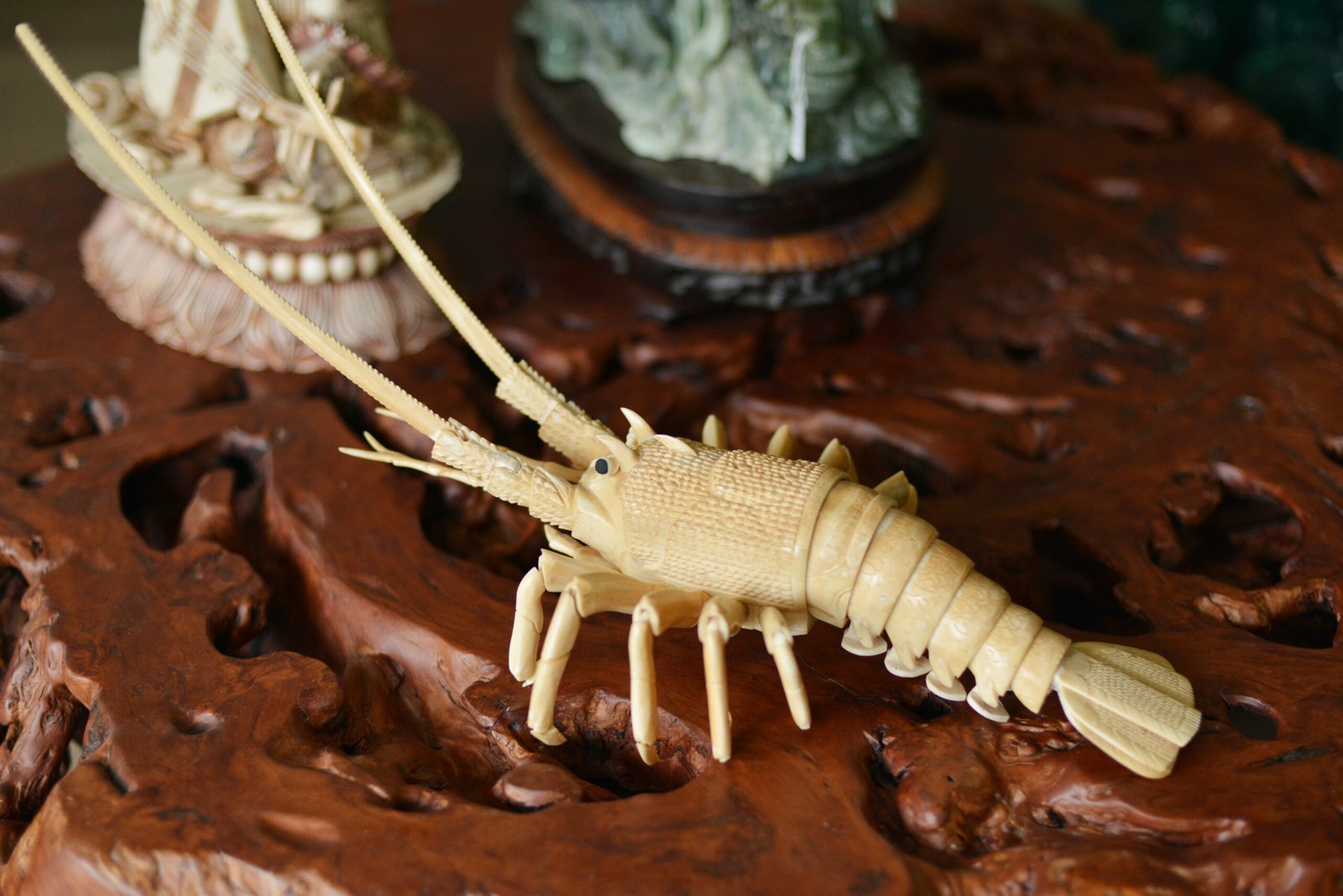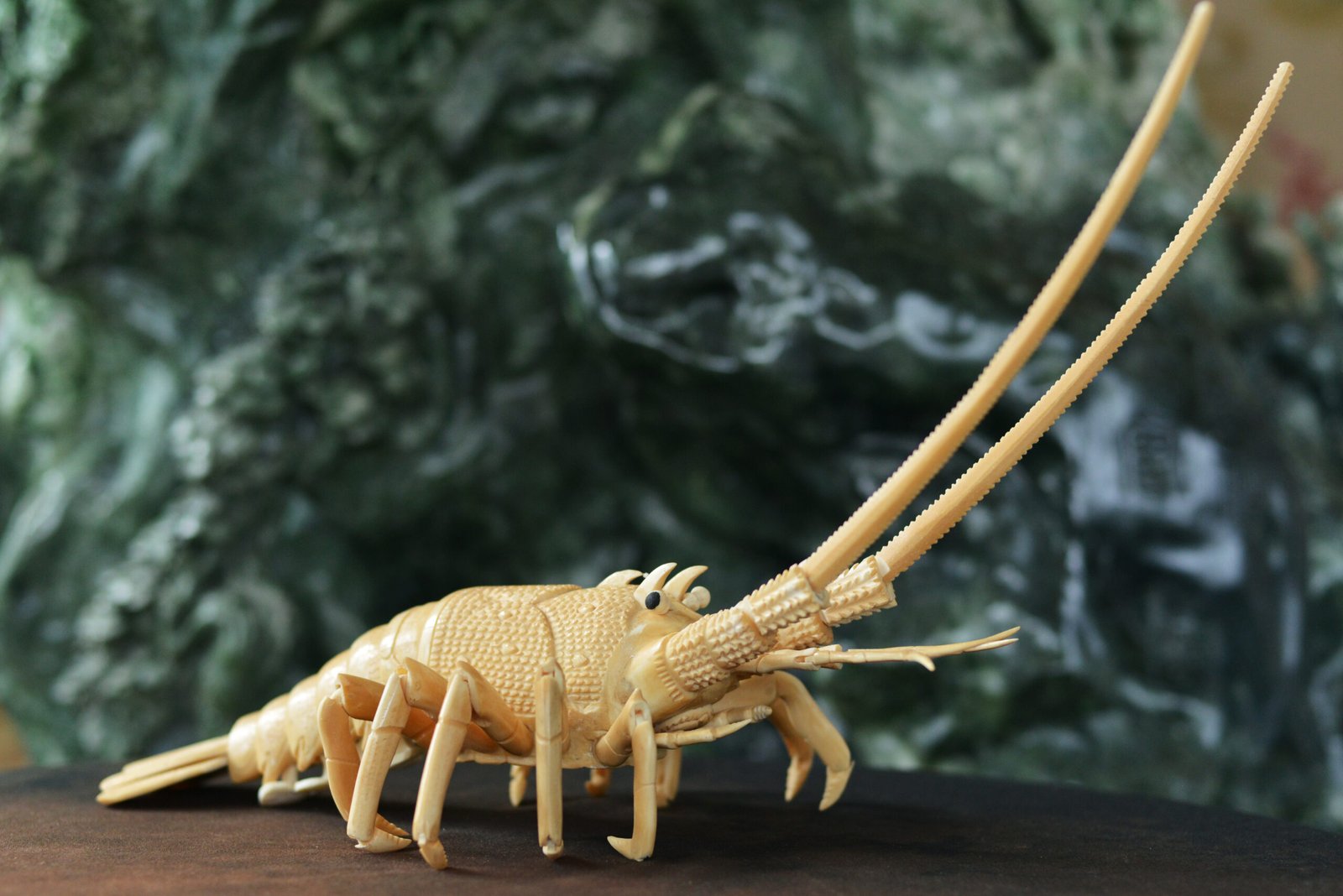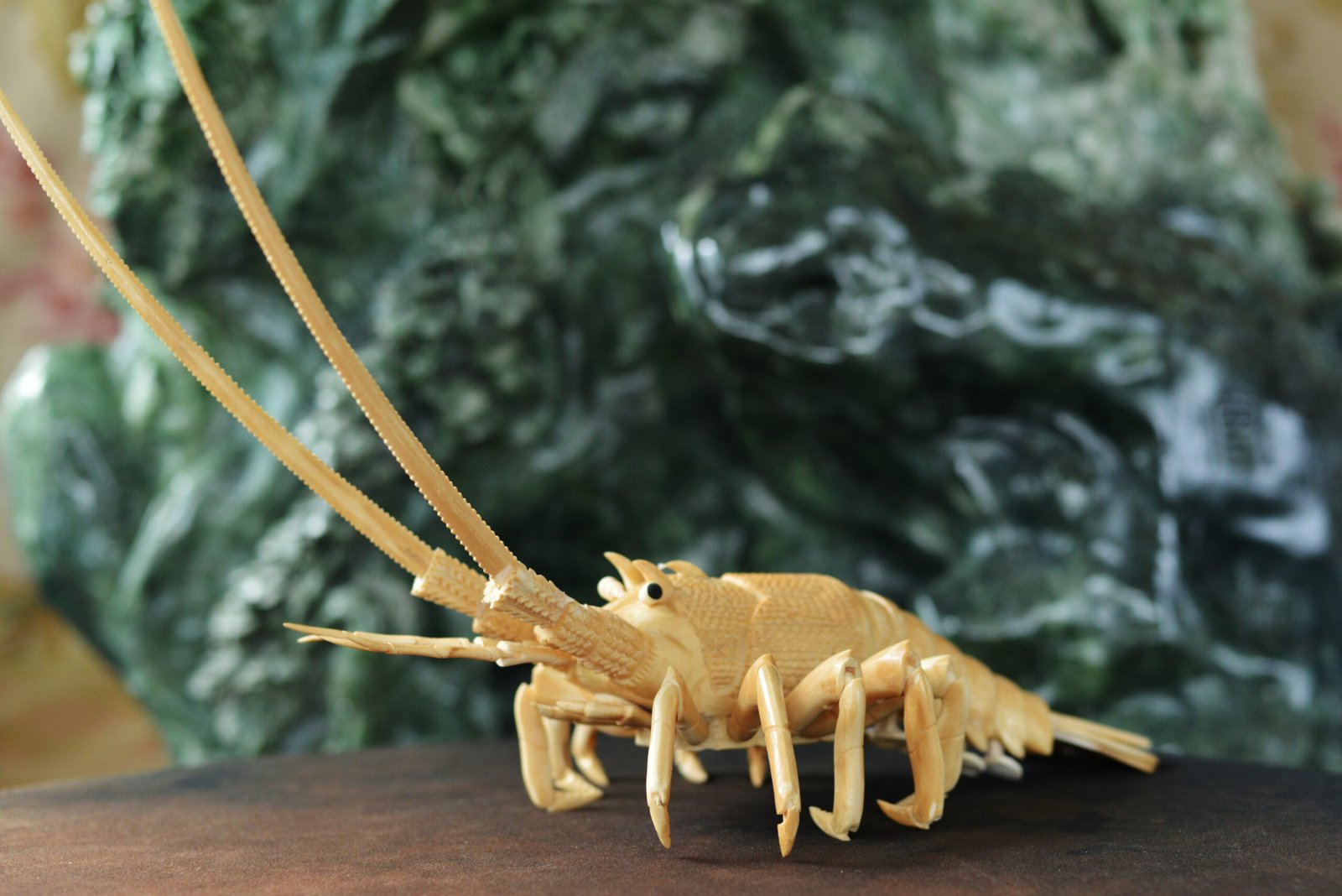 Véritable prouesse technique et artistique, cette langouste articulée est entièrement mobile : pattes, corps et longues antennes sont assemblés avec une précision remarquable, lui donnant une présence étonnamment vivante.