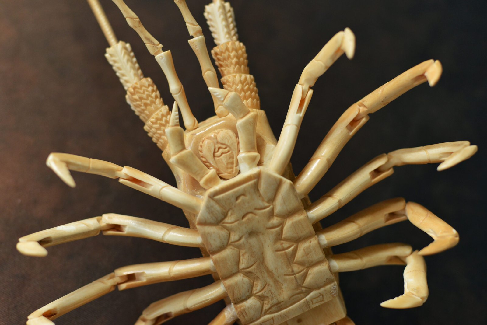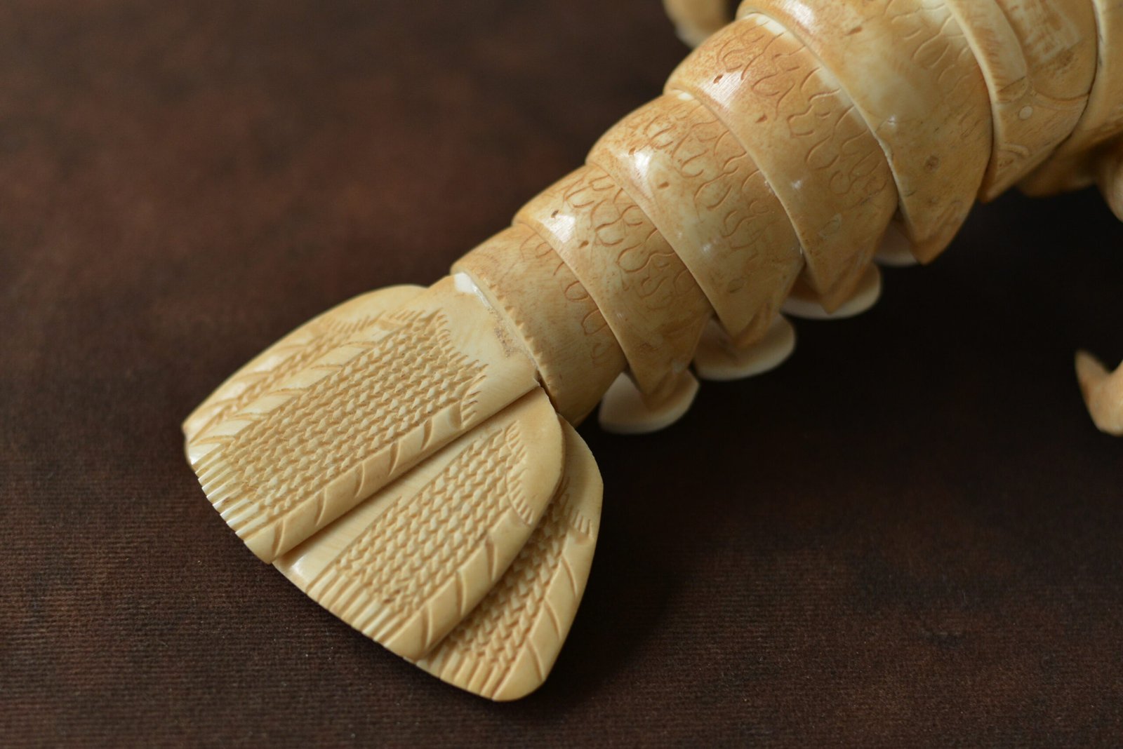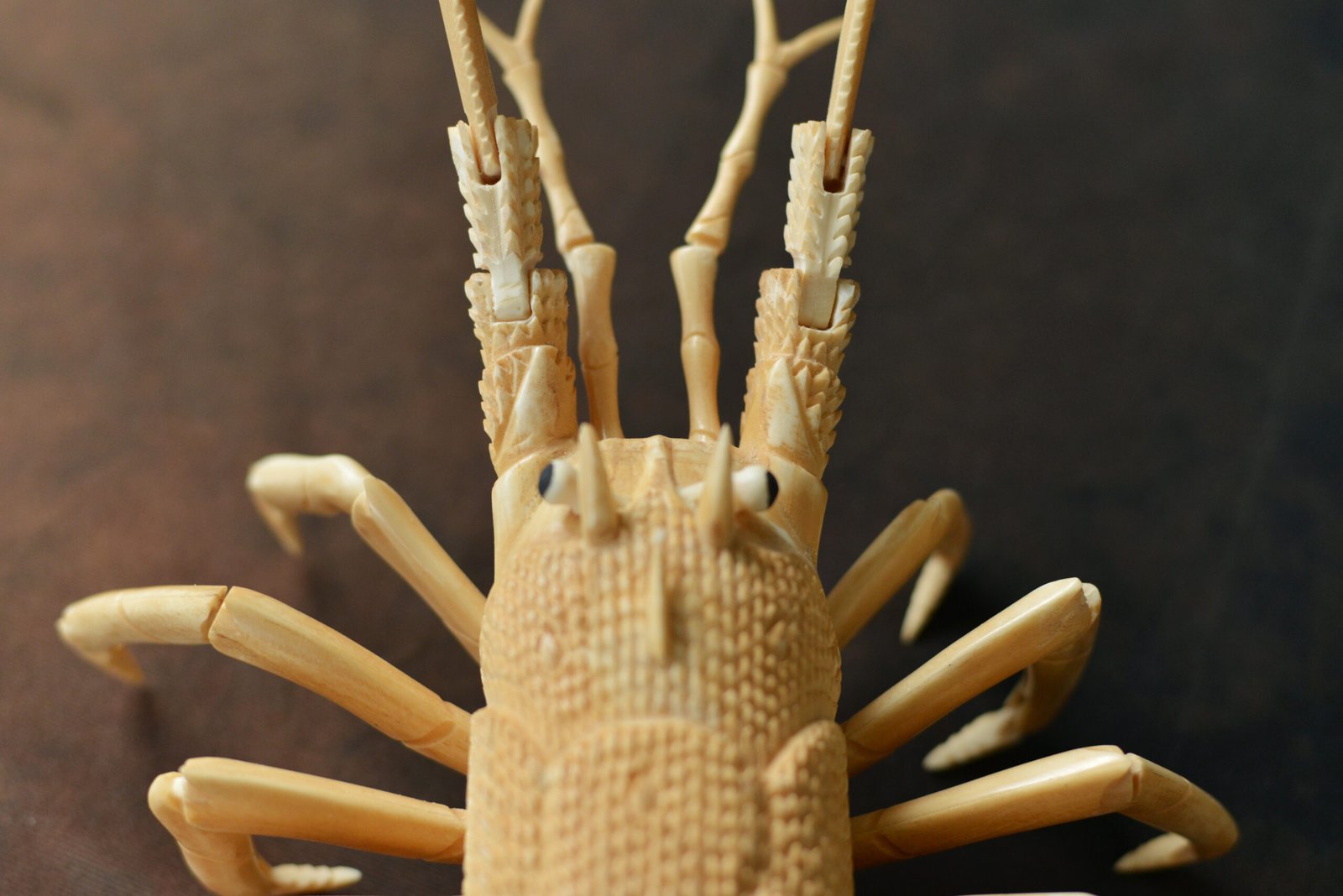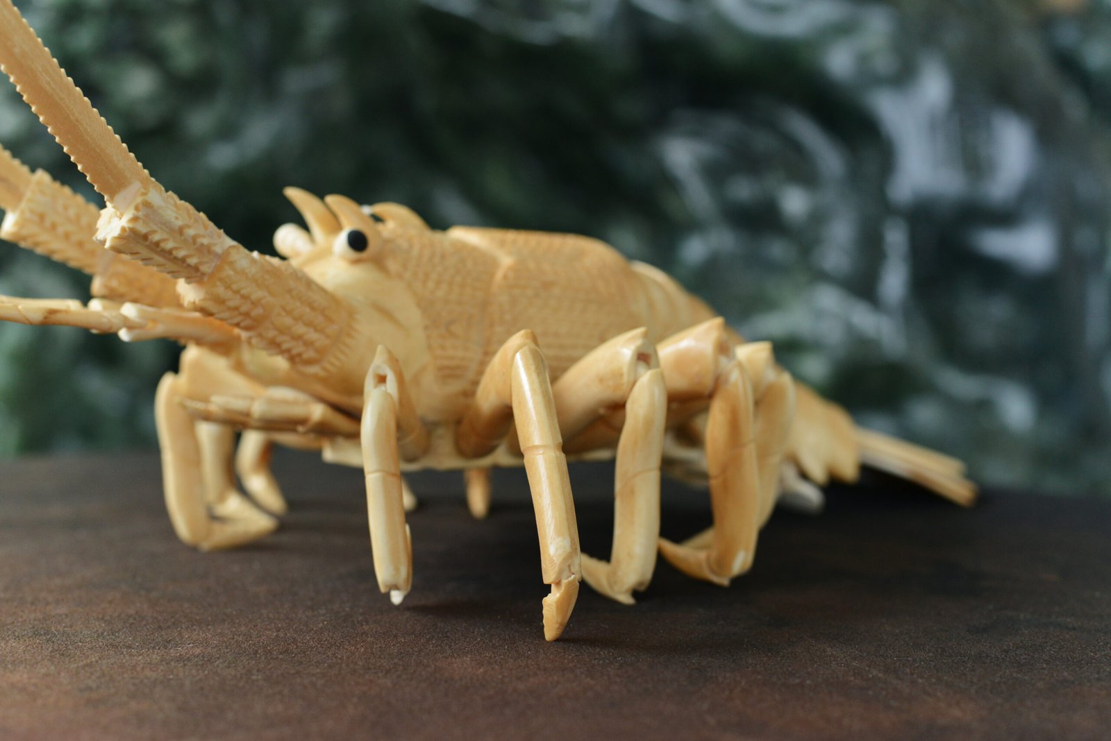 Véritable prouesse technique et artistique, cette langouste articulée est entièrement mobile : pattes, corps et longues antennes sont assemblés avec une précision remarquable, lui donnant une présence étonnamment vivante.