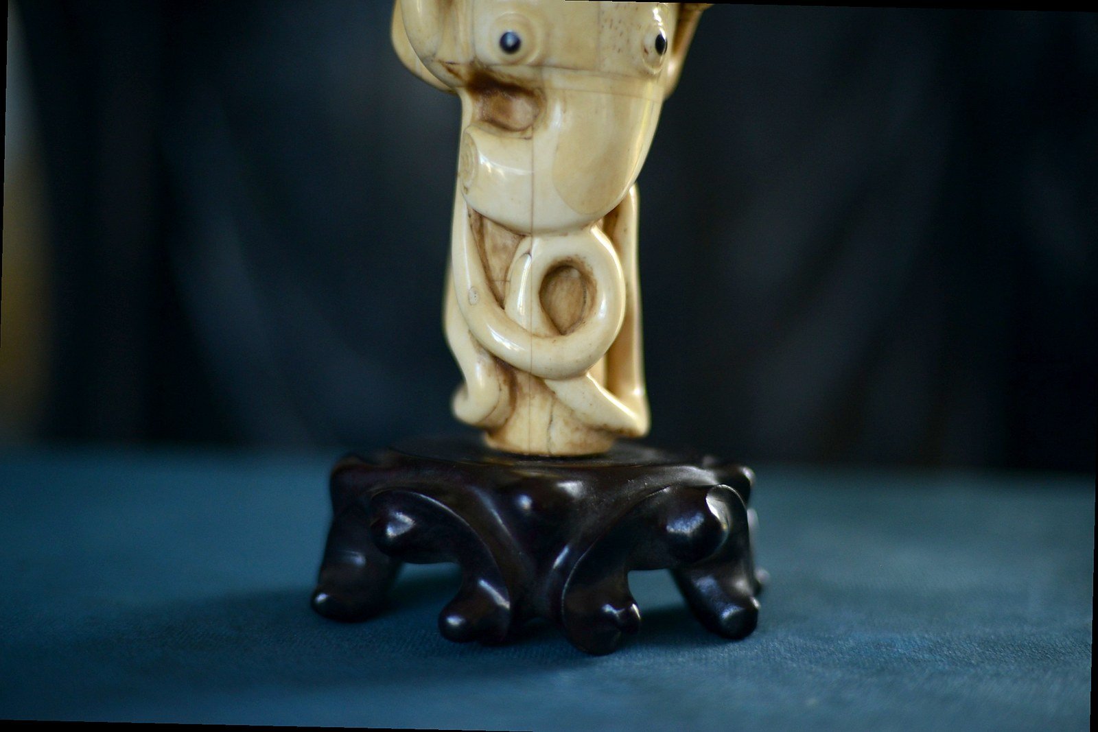 Set on a black base, which enhances the warm tone of the bone and the precision of the carving. A captivating piece, somewhere between a cabinet-of-curiosities object and an artwork, perfect for a display case and for lovers of unusual marine scenes.
