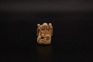While antique netsuke were carved in wood, bone, or animal ivory, the most prized material today is fossil mammoth ivory, extracted from the frozen soils of Siberia or Alaska. Both authentic and compliant with international regulations, this prehistoric ivory offers incomparable density and patina, allowing sculpture of extreme delicacy. Each piece thus unites the rarity of a millennia-old material with the excellence of Japanese craftsmanship.