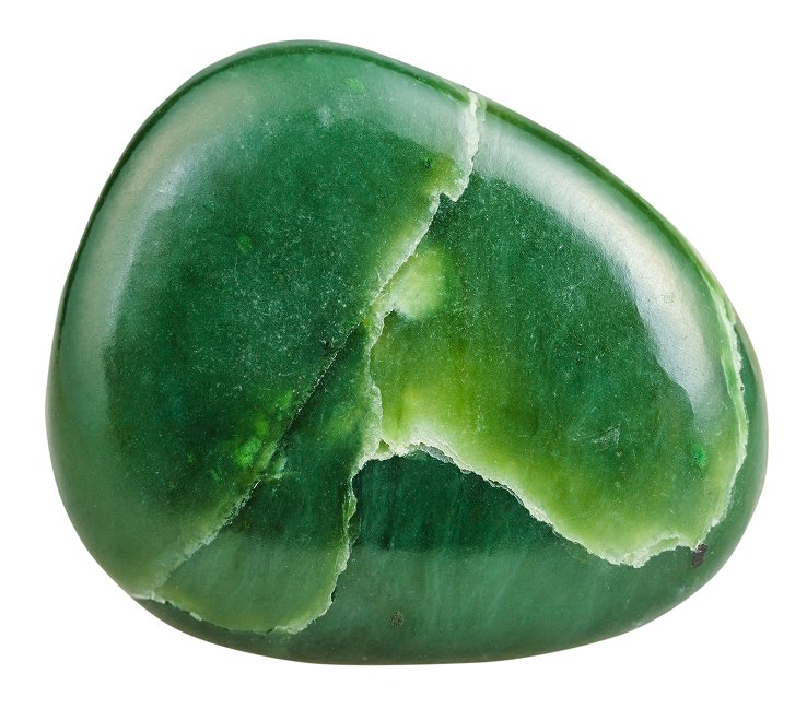 Nephrite (calcium and magnesium silicate): the first jade to be worked by humankind, used from the Neolithic period in China and by certain pre-Columbian peoples. Its hardness (5–7) makes it a resilient stone, once believed to have medicinal virtues, notably against renal colic — hence its name. It is found in China, Siberia (Irkutsk), Canada (Yukon), South America, and New Zealand. The “polar” jade of the Yukon, rare and translucent white, is highly prized; Siberian nephrites enjoy a reputation for excellence.